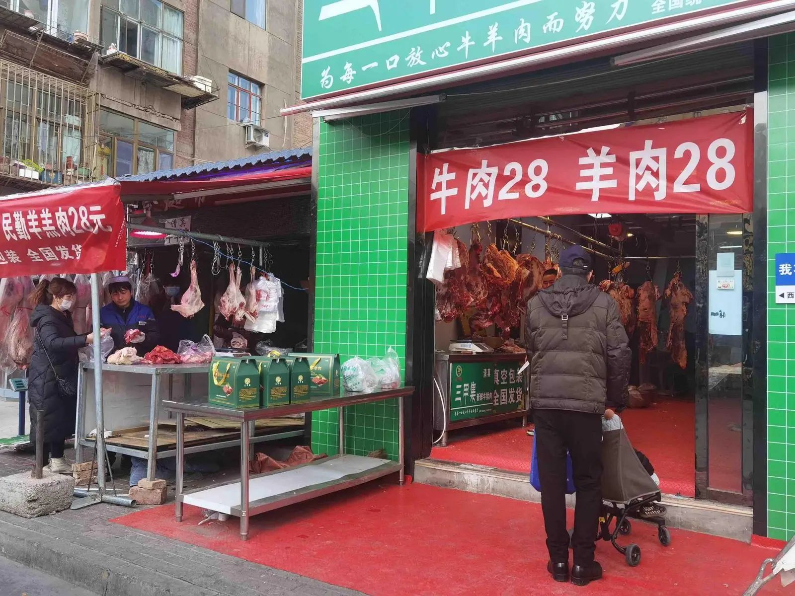 在七里河區健康路一家菜市場,牛肉28、羊肉28的橫幅掛在一家牛羊肉食品店門前,來買肉的顧客絡繹不絕。“今年牛羊肉價格都便宜,買點羊肉過年燉湯、做手抓,孩子們回來愛吃。”正在挑選羊肉的市民王大爺說。