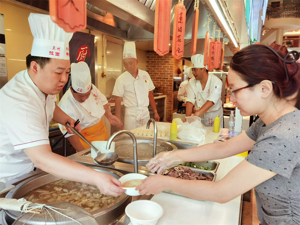 “面、牛肉、調(diào)料都是從蘭州帶過來的,就是為了保證大家在西安也能嘗到原汁原味的蘭州牛肉拉面。”甘肅金味德拉面文化產(chǎn)業(yè)集團的拉面師傅們也不負(fù)眾望,現(xiàn)場展示了蘭州牛肉拉面的正宗做法,讓大家現(xiàn)場感受金城蘭州的“煙火氣”。